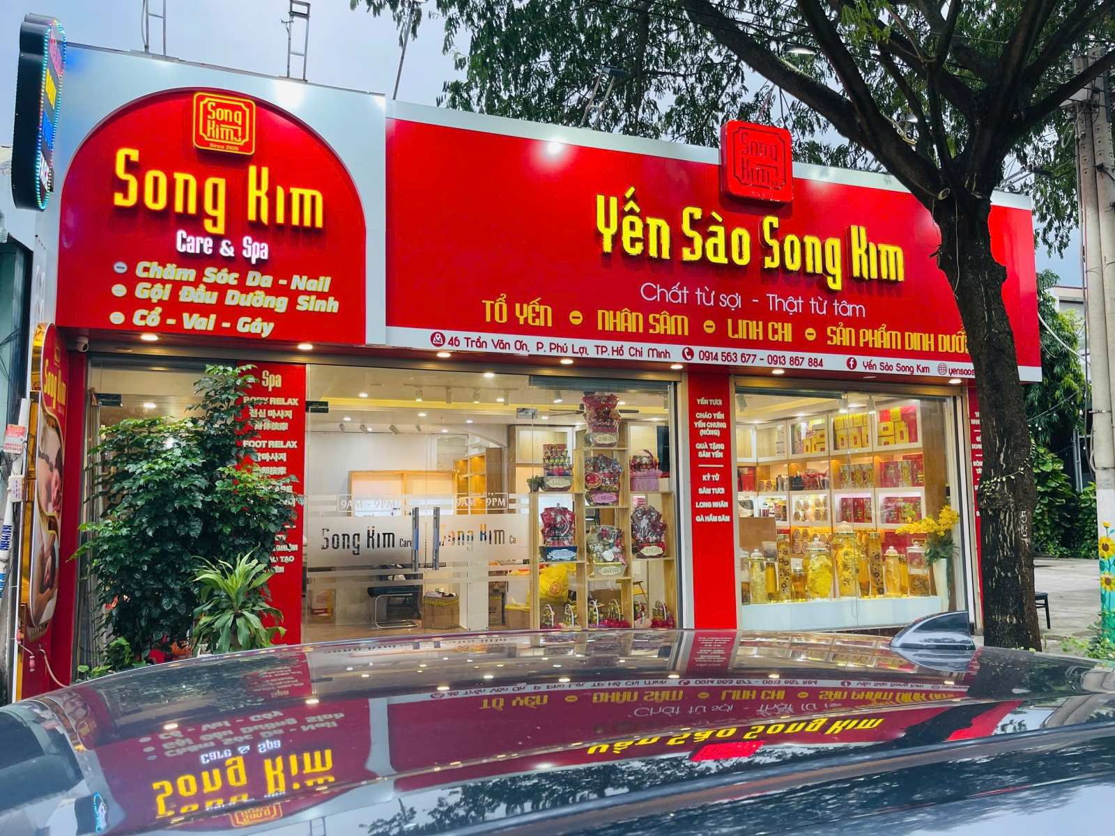 黃昏時分(2025年12月3日),胡志明市的一場細雨剛停,Yến Sào Song Kim 門市裡燈光暖黃,一整面木質牆上「Yến Sào Song Kim」字樣格外醒目。店內貨架上,越南燕窩禮盒與各式健康食品層層堆疊,像是一張張打開的名片,向來訪者展示越南燕窩產業這些年的變化與野心。